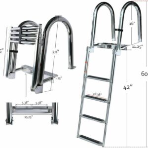 Boat Accessories Marine 4 Step Folding Telescoping Boat Ladder Stainless Steel Inboard Rail Dock Heavy Duty Siwmming Ladder