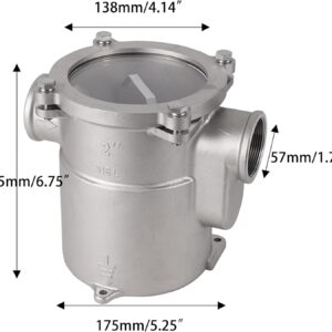 Product name: Sea water strainer Size: 2” Material: 316 stainless steel Application: Marine Boat Yacht Package Includes: 1 Piece 1”Marine Water Strainer Notes: 1. Due to the different monitor and light effect, the actual color of the item might be slightly different from the color showed on the pictures. Thank you! 2. Please allow 1-3cm measuring deviation due to manual measurement.