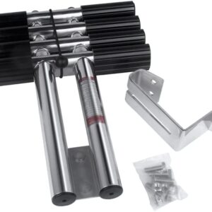 The telescoping steps on this boat ladder fold quickly and effortlessly into the water for safe boarding. For storage, the low profile stainless steel steps fold compactly and also gives this boarding ladder a very sleek look.