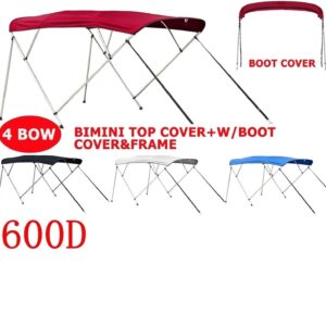 4 Bow Bimini Top Replacement Canvas Cover W/Boot Cover+Frame UV Resistant