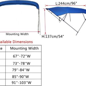 Wingxaoyy Marine Accessories 600D Boat Cover 4 Bow Biminii Top Replacement Canvas with Boot Frame Marine Cover Anti UV for V-Hull Jon Center Console Boat(Width 91-103 inch)